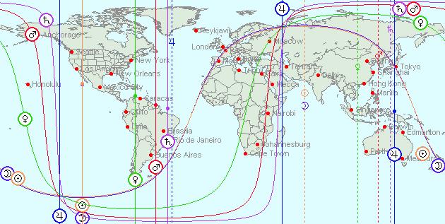 Planetary in scope by definition, there are nonetheless a few hints as to where the July 11 eclipse will make its seismic and atmospheric presence felt most strongly. Theres the zone of visibility for the eclipse, for example: mostly out in the South Pacific, although it grazes the southern end of South America at its eastern extremity and comes very close to Tahiti at the western end. Turning to the astro-locality map, the western US and Canada (close to, but not limited to, the Rocky Mountain range) lie in one longitudinal risk zone that crosses the poles to traverse Central Asia (centered on Afghanistan, in this instance). Theres also a horizon arc running northeasterly from the northwest coast of Africa across Western Europe and the north of Russia, before turning southeasterly to cross eastern China, Japan and the South Pacific to make landfall again in New Zealand. Some of the biggest storm and seismic action for the July 1-18 period are likely to touch these areas of our home planet including, I suspect, the formation of an Atlantic hurricane within a few days either way of July 11.
